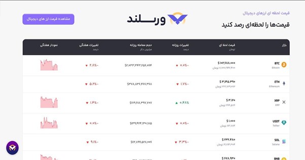 قیمت ارز دیجیتال به تومان و تتر در صرافی ارز دیجیتال ورسلند