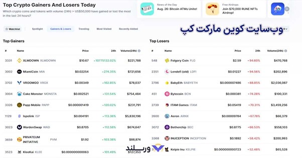 یکی از مهم‌ترین ویژگی‌های کوین مارکت کپ نمایش حجم معاملات روزانه و ارزش بازار (Market Cap) هر ارز دیجیتال است که دید کلی از وضعیت بازار ارائه می‌دهد.