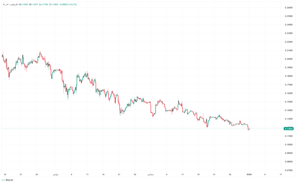 در تایم فریم ۴ ساعته، قیمت ترون پس از یک اصلاح میانمدت، وارد فاز بازیابی شده و ساختار کلی بازار در حال حاضر صعودیِ ملایم ارزیابی میشود. قیمت توانسته سقفهای پایینتر قبلی را بشکند و بالاتر از کفهای اخیر تثبیت شود که نشانه افزایش قدرت خریداران است.